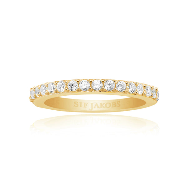 För att skapa våra prisvärda och lyxiga smycken tillverkas Sif Jakobs Jewellerys guldringar av högkvalitativt 18 karat guld och 925 Sterling silver, vilket inte är lika dyrt som massivt guld. Men med rätt vård förblir dessa ringar vackra och glittrande i många år. Guldringar är en klassisk kombination med både svart och vitt samtidigt som de kompletterar de vackra nyanserna av färgade zirkoner.Sterling silver är en legering av 92,5 viktsprocent silver och 7,5% andra metaller för förstärkning. Denna exklusiva standard av 925 Sterling silver används i alla Sif Jakobs Jewellerys silverringar. Som en minimalistisk, modern look passar silver vackert ihop med vita zirkoner.