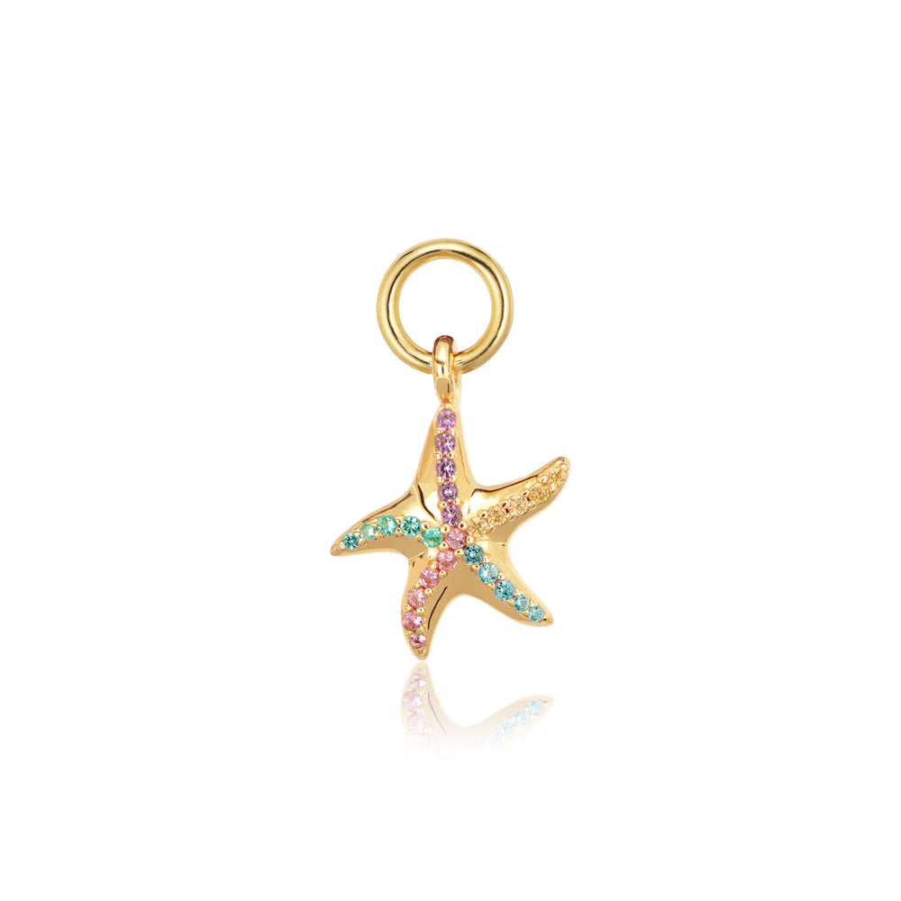 Stjärnfisk Berlock i 18 karat guldpläterad 925 Sterling Silver med polerad yta, och handplacerade fasetterad multifärgade zirkoner