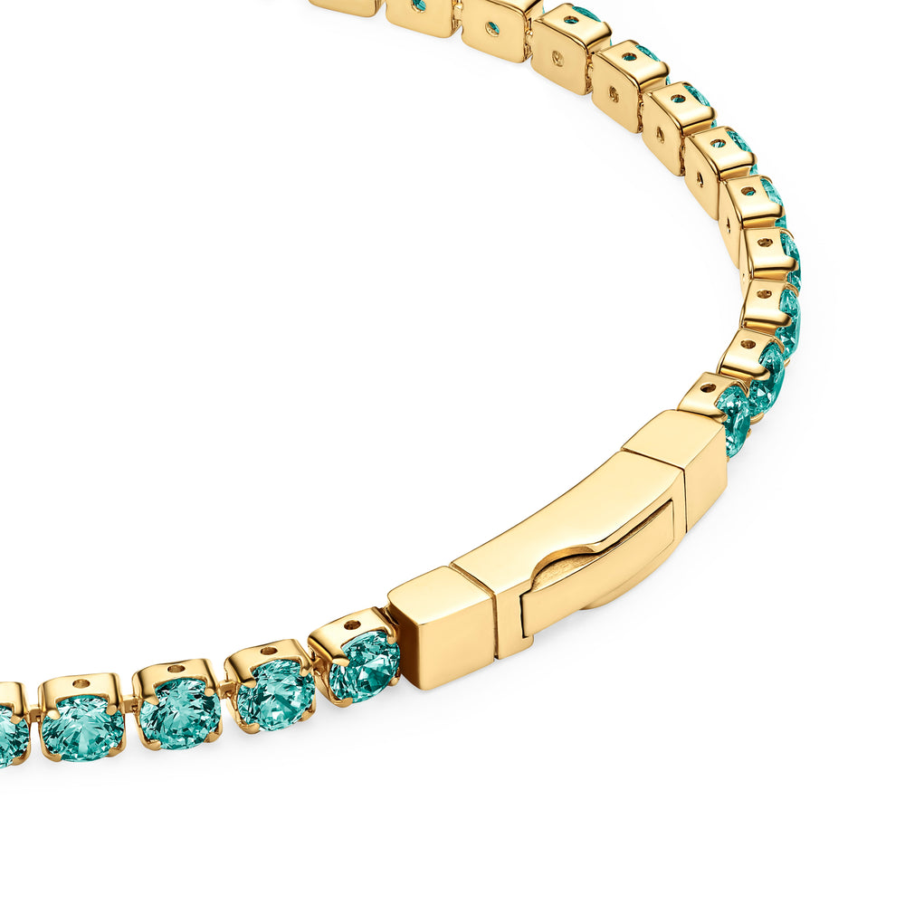 Armband tillverkat av 18 karat förgyllt 925 sterlingsilver, polerad yta och infattat med facettslipade turkosfärgade zirkoner.