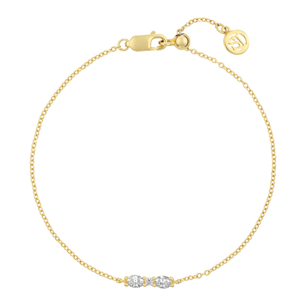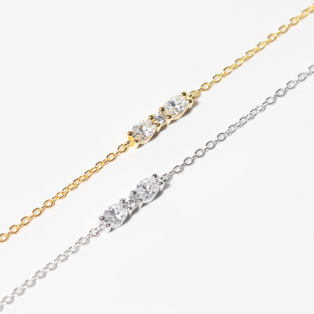 Armband tillverkat av 18 karat förgyllt 925 sterlingsilver, polerad yta, och infattat med facettslipade vita zirkoner.