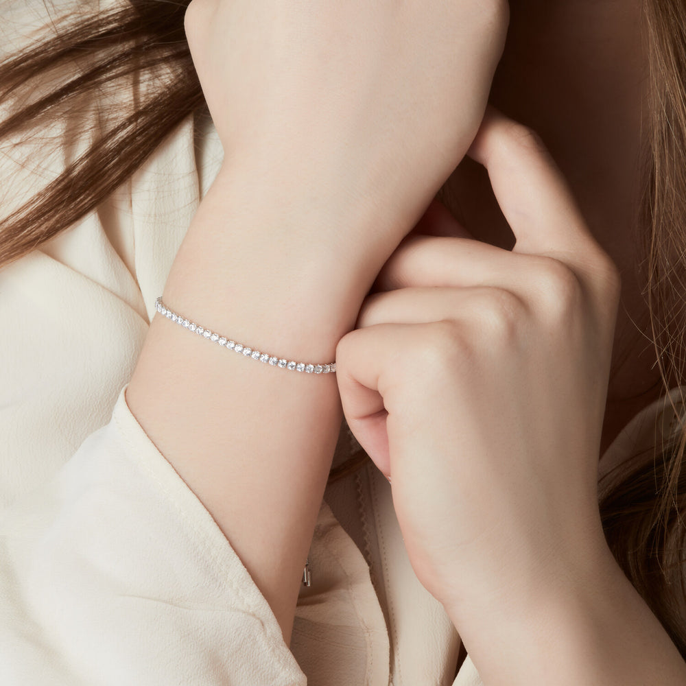 Armband i rodiumpläterat sterlingsilver 925 med blank yta och fasetterad vit zirkona.