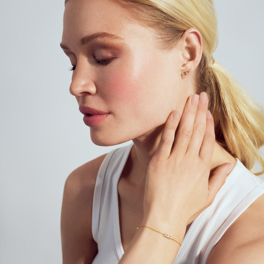Armband av 18k förgyllt 925 Sterling Silver, en polerad yta och handplacerade facetterade vita zirkoner.