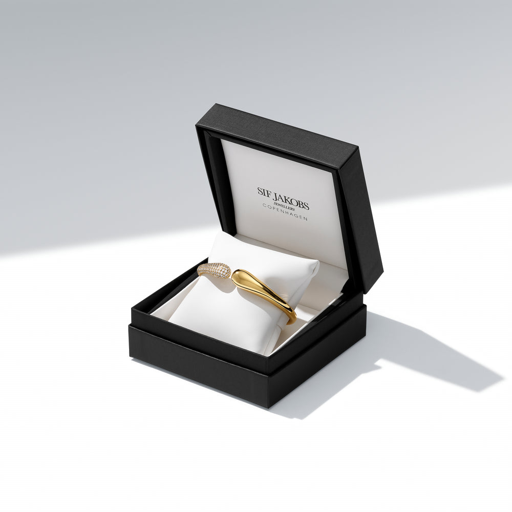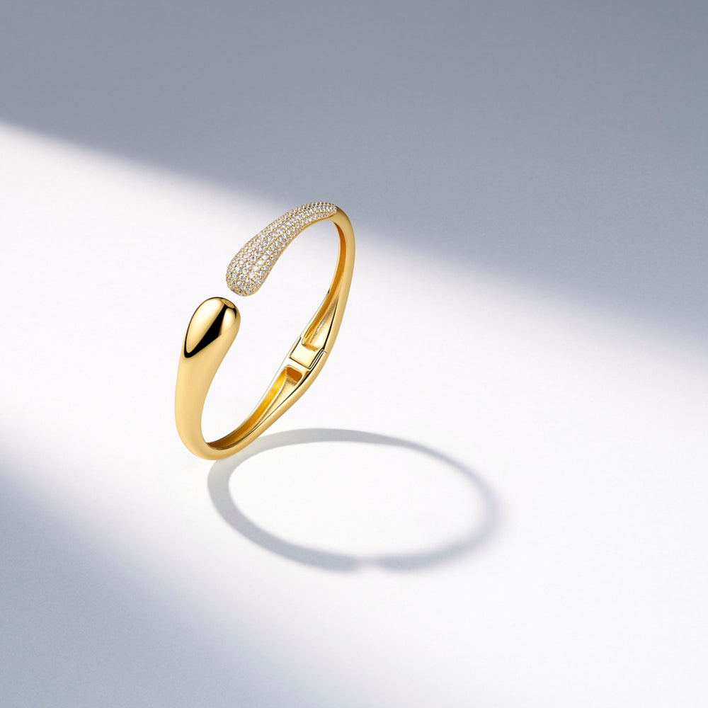 Bangle av 18 karat förgyllt 925 sterlingsilver, en polerad yta och handmonterad med fasettslipade vita zirkoner