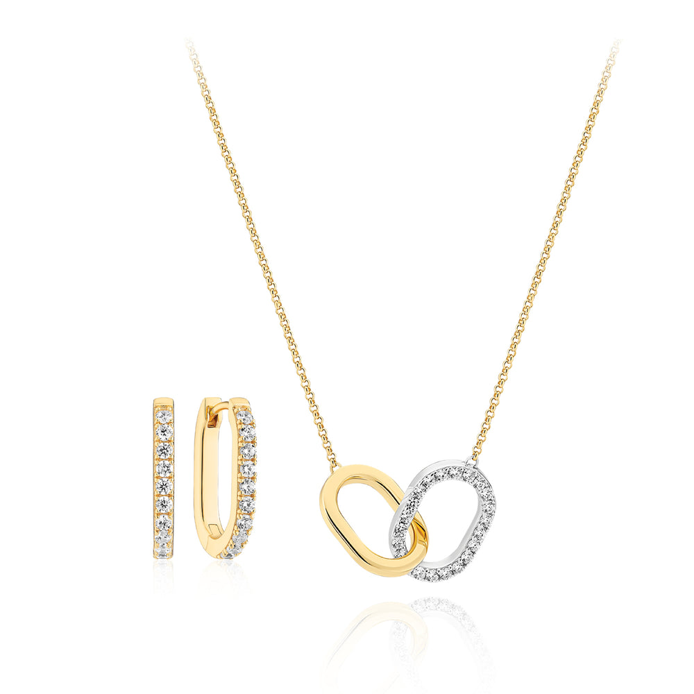 Set i 18 karat guldpläterat 925 Sterling Silver med polerad yta och handfattade, fasettslipade vita zirkoner.