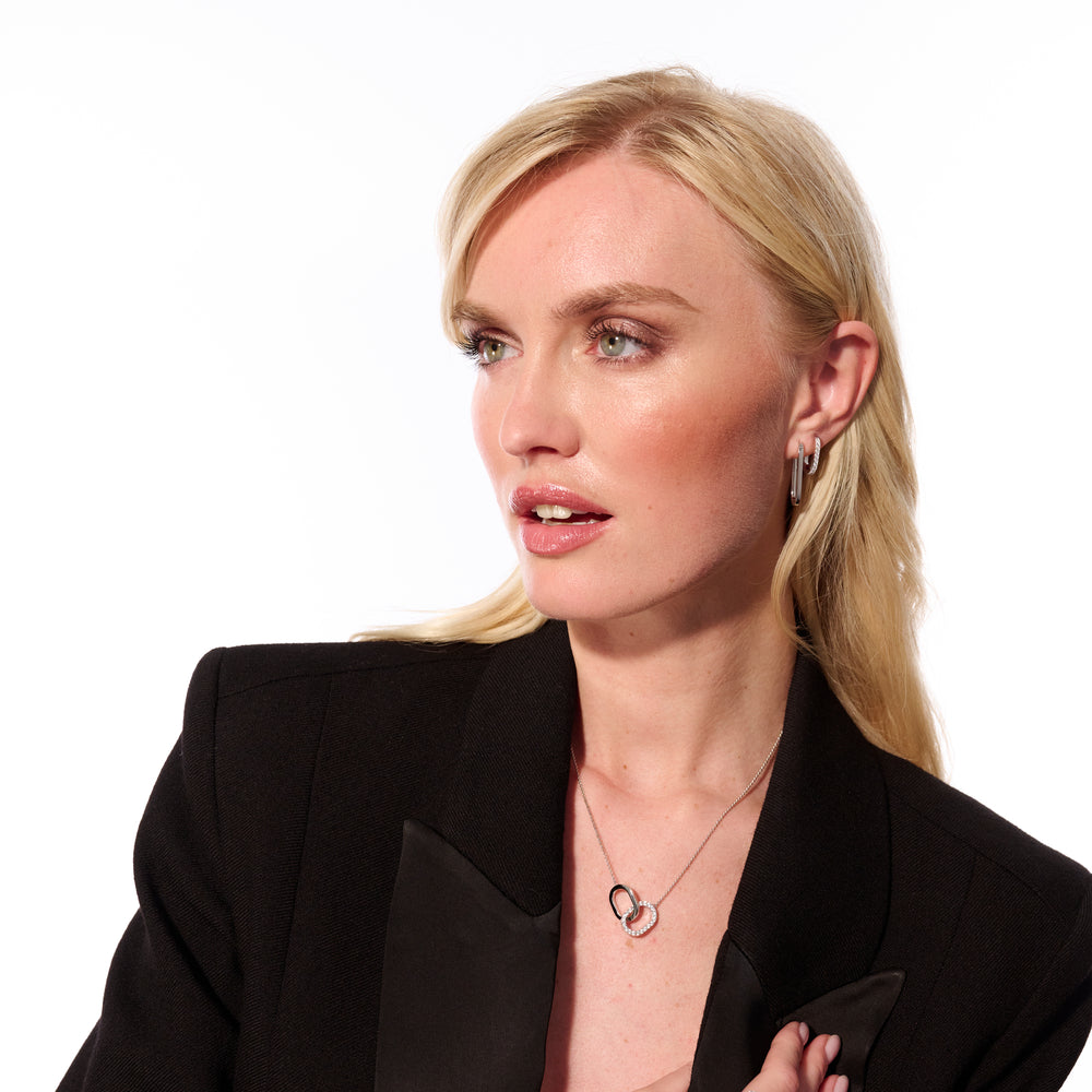 Set i rodiumpläterat 925 Sterling Silver med polerad yta och handfattade, fasettslipade vita zirkoner.