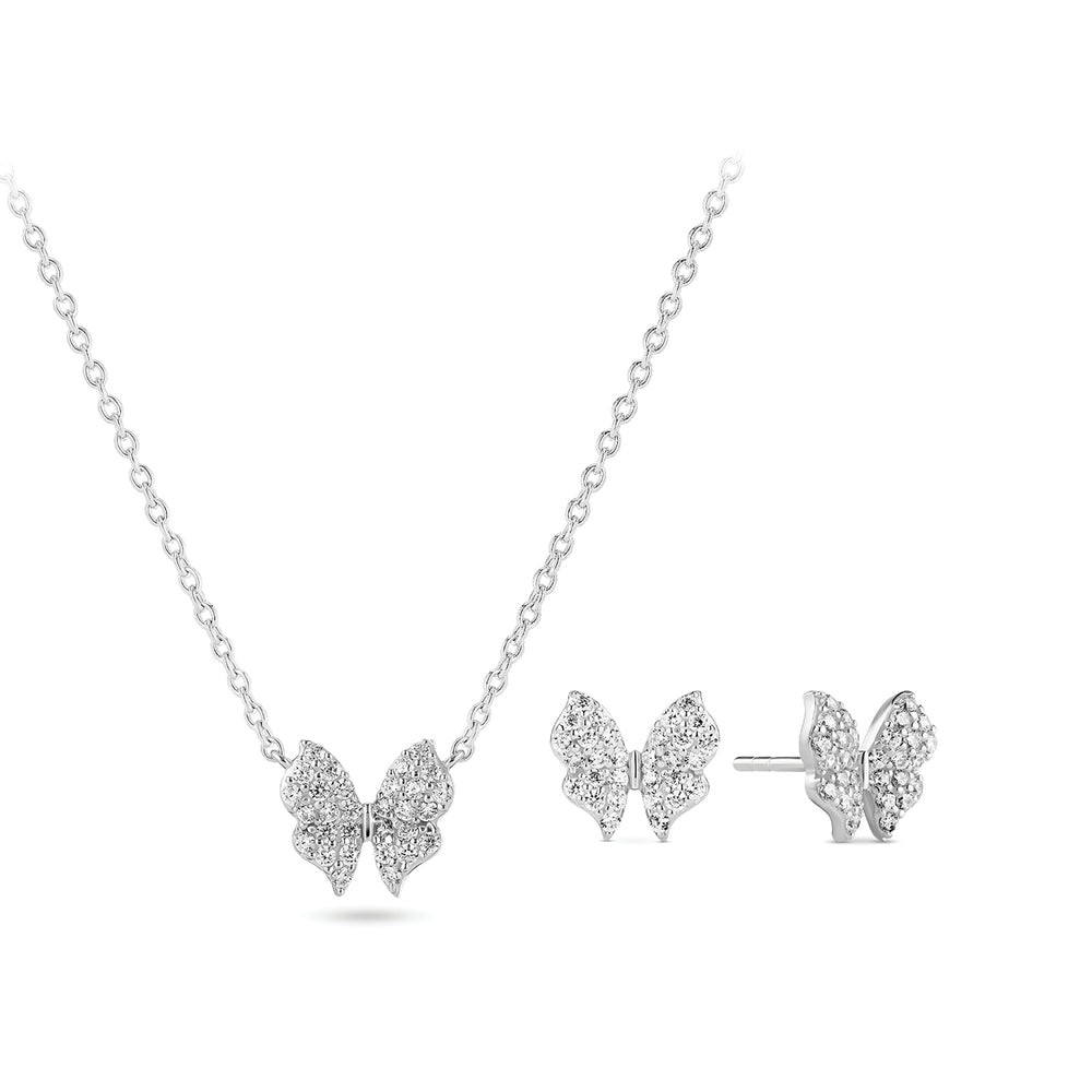 Set av rodinerat 925 sterling silver, med en polerad yta och handfattade facetslipade vita zirkoner.