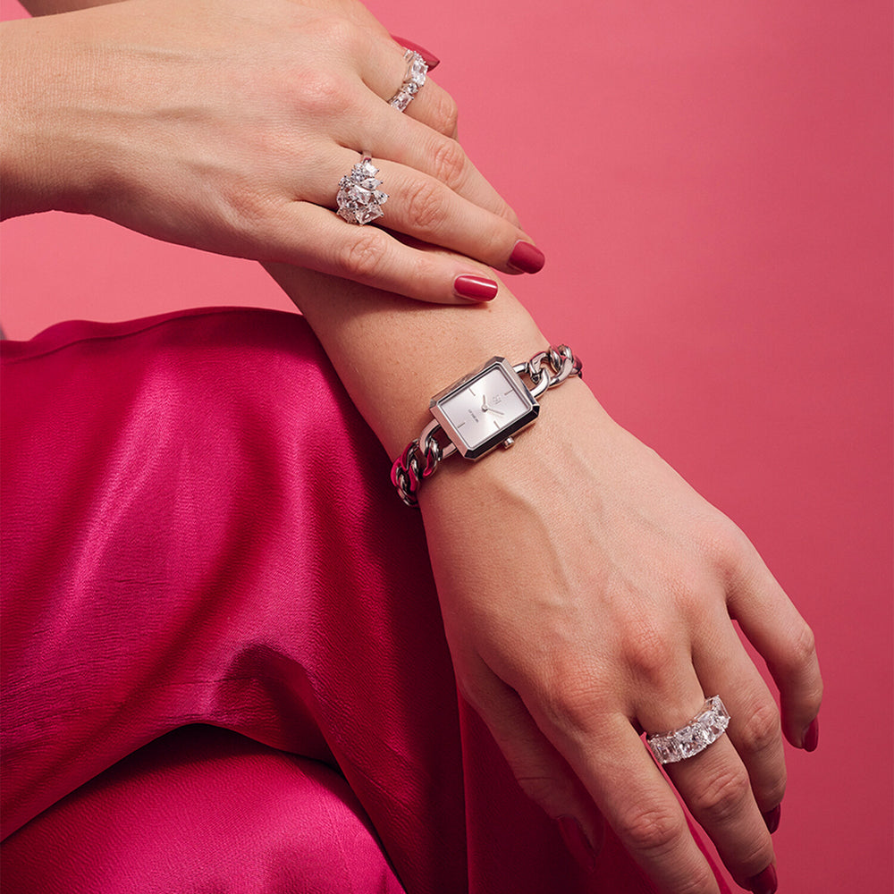 Klockmått: Urtavla- Längd 26,5 mm, bredd 22 mm, tjocklek 7,6 mm. Armband - Längd 18 cm, bredd 11,6 mm, tjocklek 3 mm