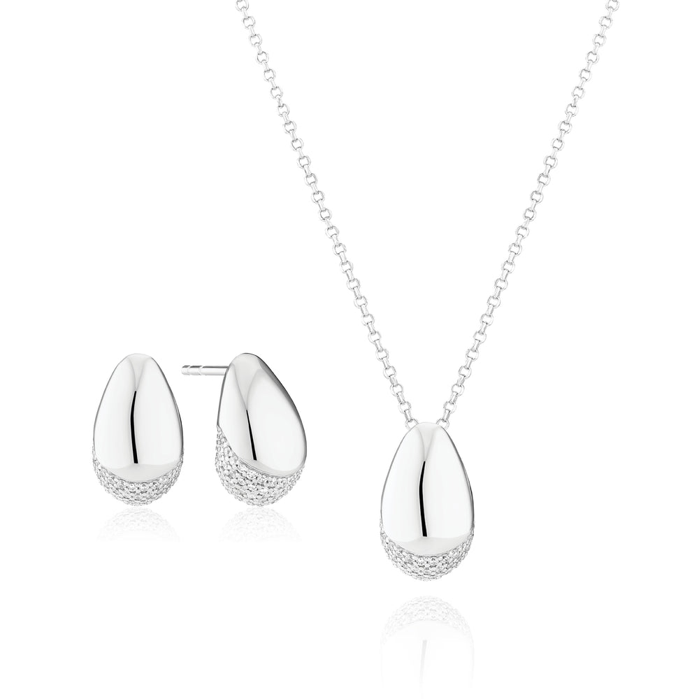 Set i rodiumpläterat 925 Sterling Silver med polerad yta och handfattade, fasettslipade vita zirkoner.