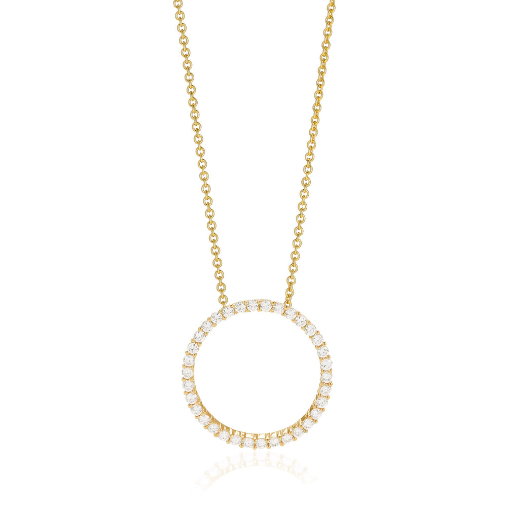 Halsband i sterlingsilver 925 guldpläterad med 18 karat guld med polerad yta och fasetterad vite zirkoner.