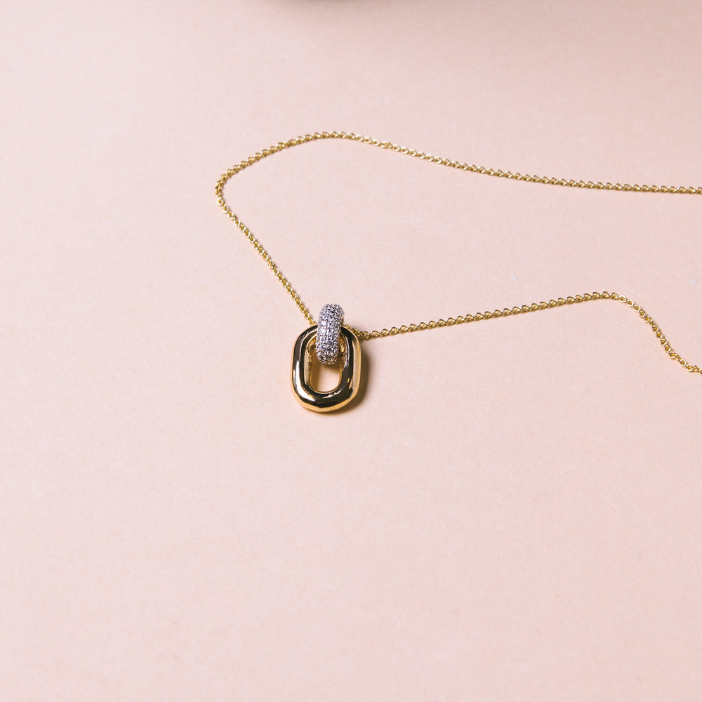 Halsband i sterlingsilver 925 guldpläterad med 18 karat guld med polerad yta och fasetterad vite zirkoner.