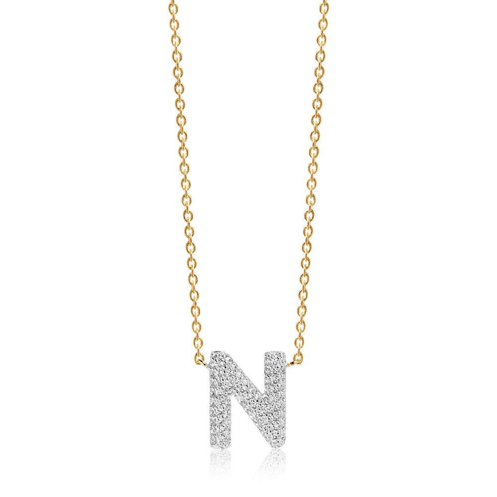 Halsband i sterlingsilver 925 guldpläterad med 18 karat guld med polerad yta och fasetterad vite zirkoner.