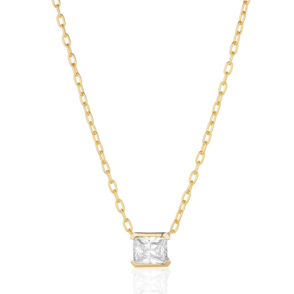 Halsband av 18 karat guldpläterad 925 Sterling silver, polerad yta och vita hand placerade zirconia stenar.