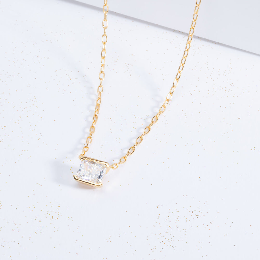 Halsband av 925 Sterling silver med rodium, polerad yta och vita hand placerade Emerald skurna zirconia stenar.