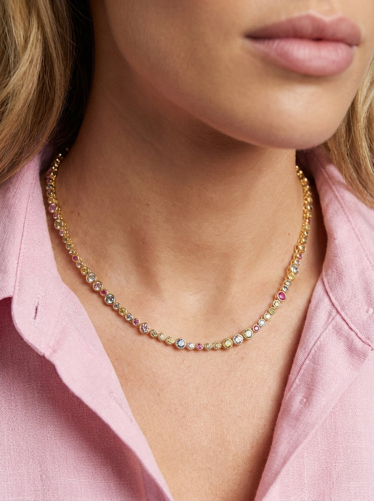 Halsband i 18 karat guldpläterat 925 Sterling Silver med polerad yta och handfattade, fasettslipade multifärgade zirkoner.