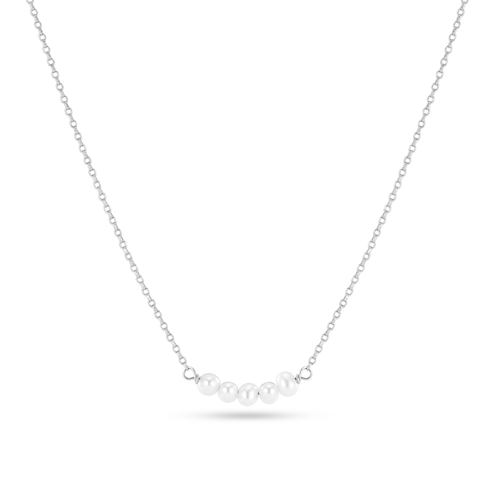 Halsband av rhodinerat 925 Sterling Silver med en polerad yta och handplacerade vita färskvattenspärlor.