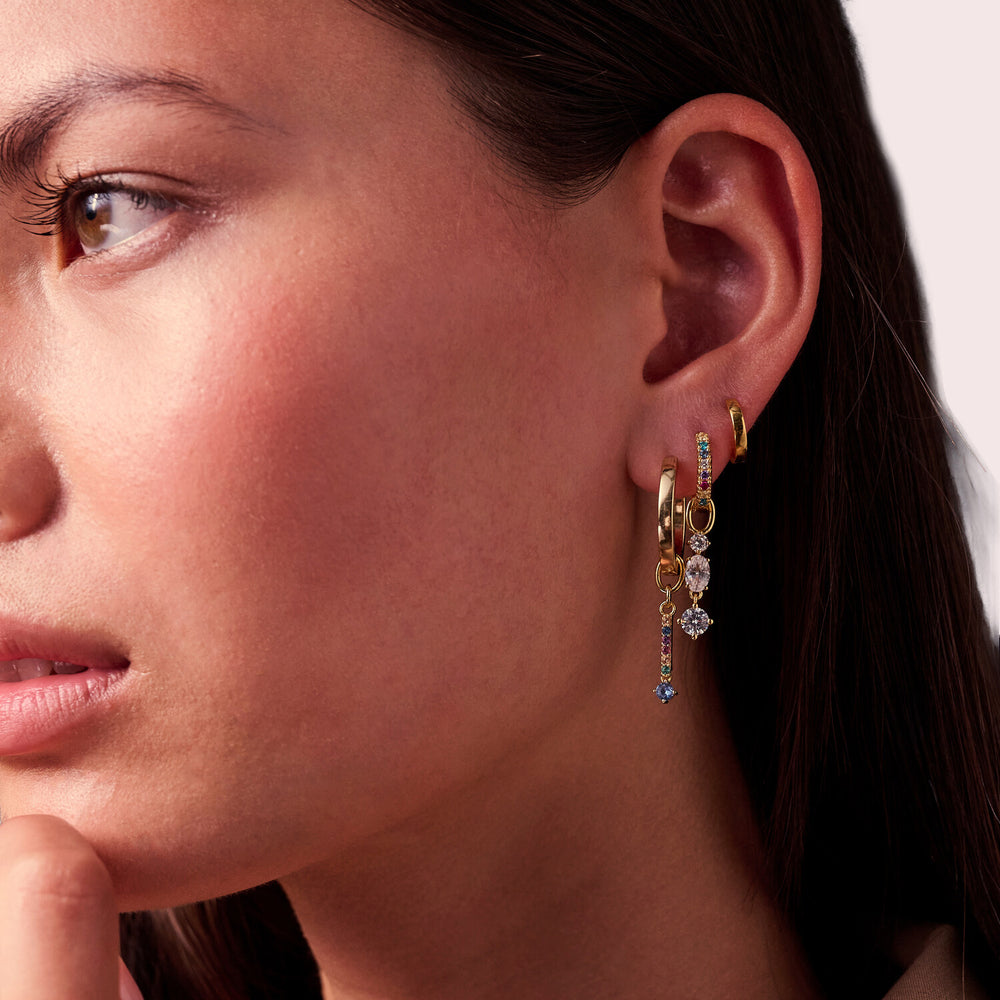 Berlock för alla kompatibla hoops, tillverkad av 18 karat guldpläterat 925 Sterling Silver med en polerad yta med handplacerad fasettslipad flerfärgad zirkonia. Vi har även tillhörande berlocklås som går att köpas med ankarkedja eller separat. Låset är designat för att passa alla kompatibla kedjor, halsband eller armband så att du kan styla med valfri berlock. Fäst enkelt din berlock på låset och byt ut när du hittat en ny favorit. Det är perfekt för att mixa och matcha, gör dina smycken unika och skapa en look som är personlig.