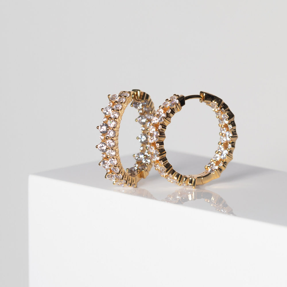 Örhängen av 18 karat förgyllt 925 Sterling Silver med polerad yta och handplacerade facettslipade vita zirkoner.