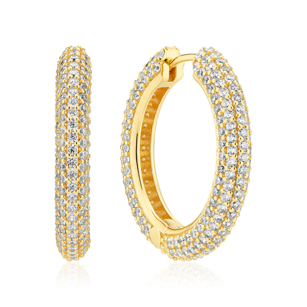 Örhängen i 18 karat guldpläterad 925 Sterling Silver med polerad yta och handplacerade fasetterad vita zirkoner