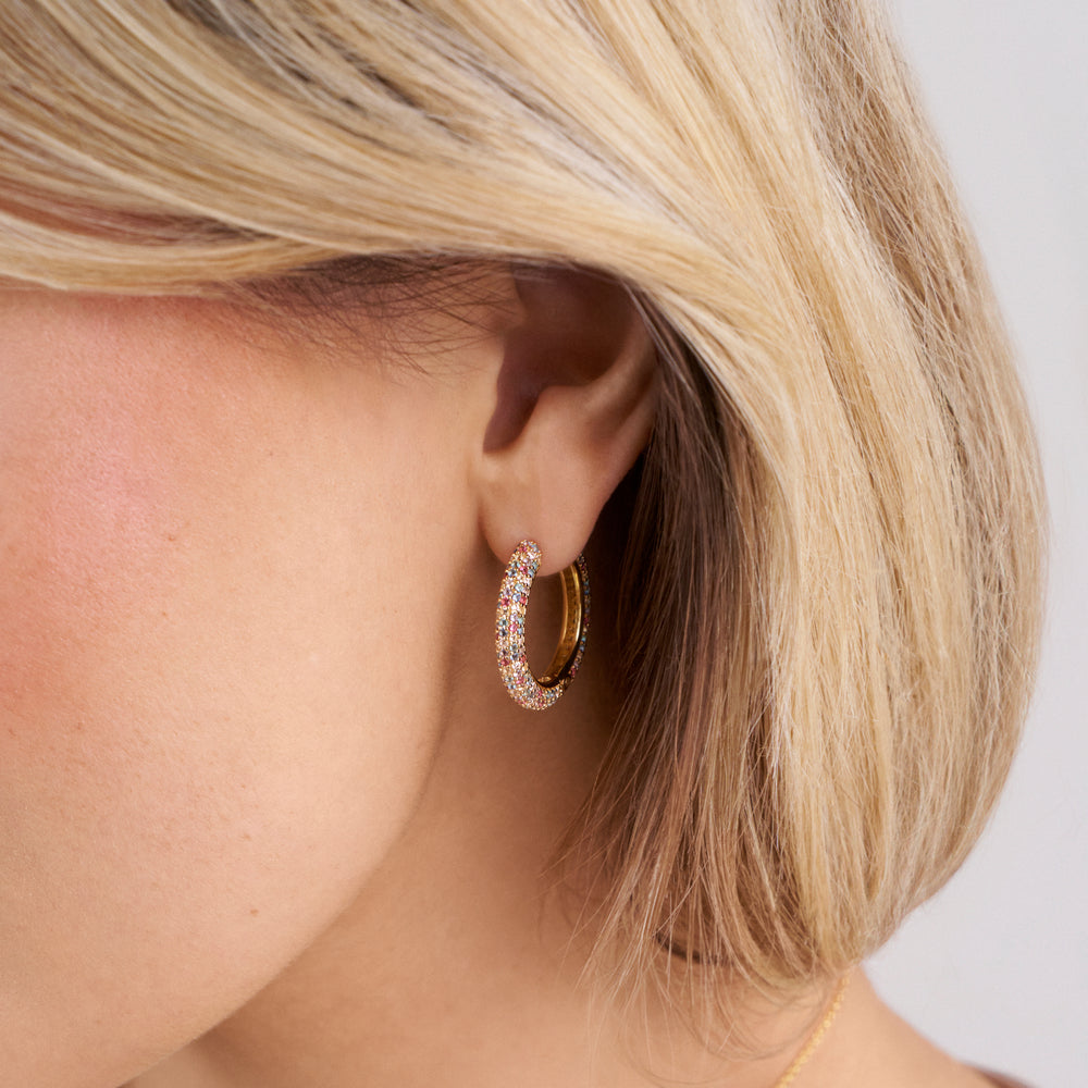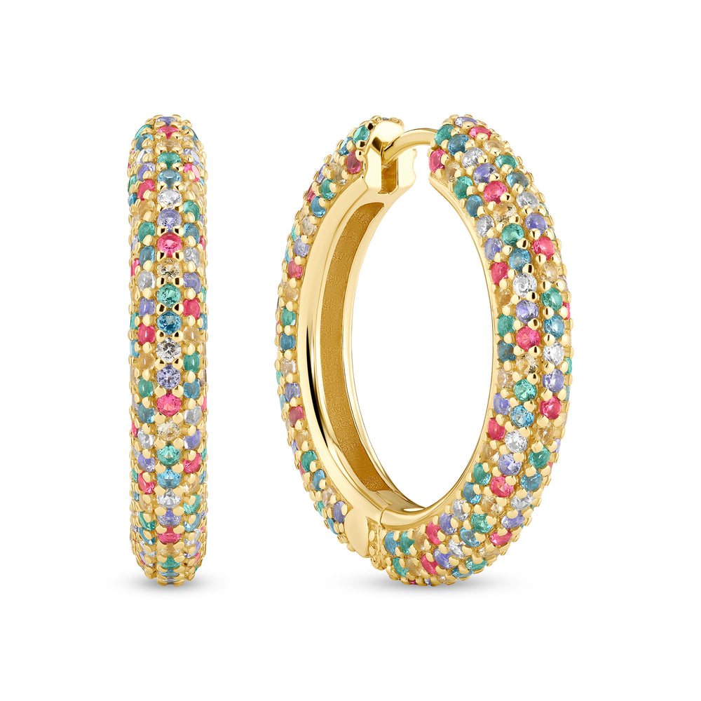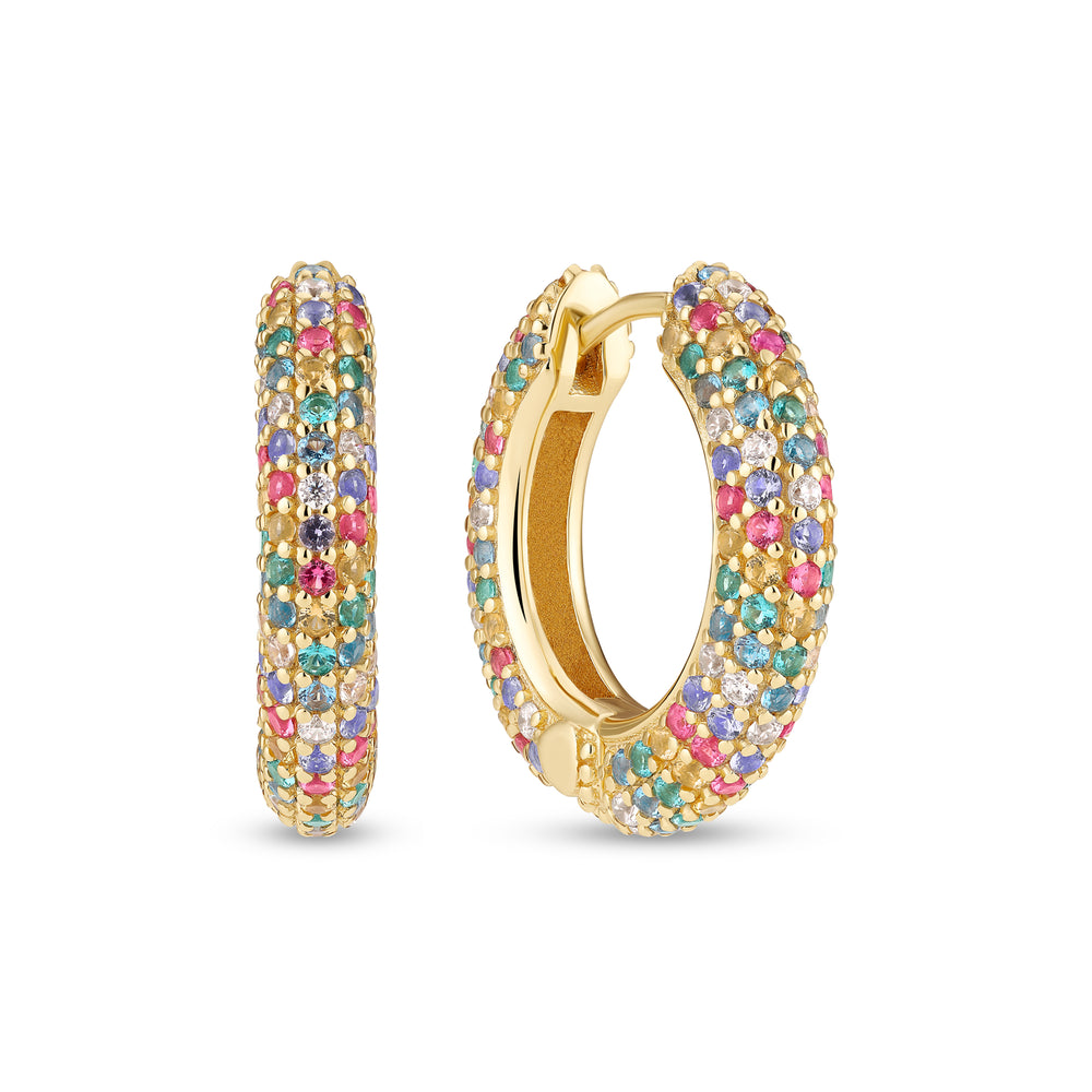 Örhängen av 18 karat förgyllt 925 sterlingsilver, en polerad yta och handmonterad med fasettslipade multifärgade zirkoner