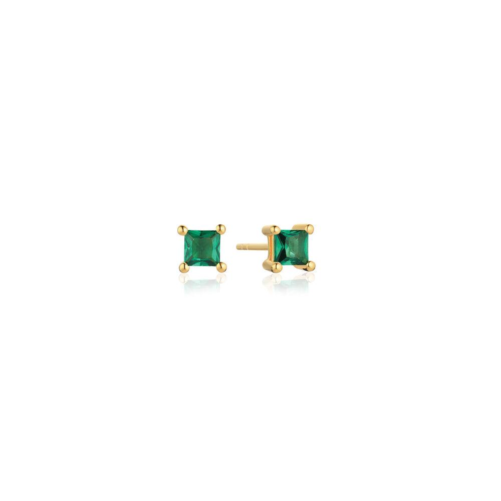 Örhängen i 18 karat förgyllt 925 Sterling silver med polerad yta och handplacerade facettslipade gröna zirkoner.