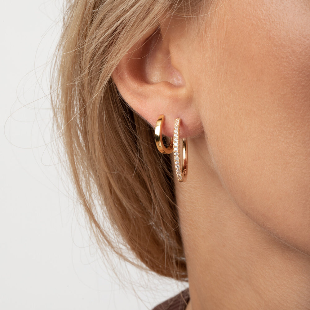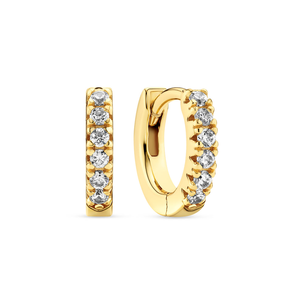 örhängen i sterlingsilver 925 guldpläterad med 18 karat guld med polerad yta och fasetterad vite zirkoner.