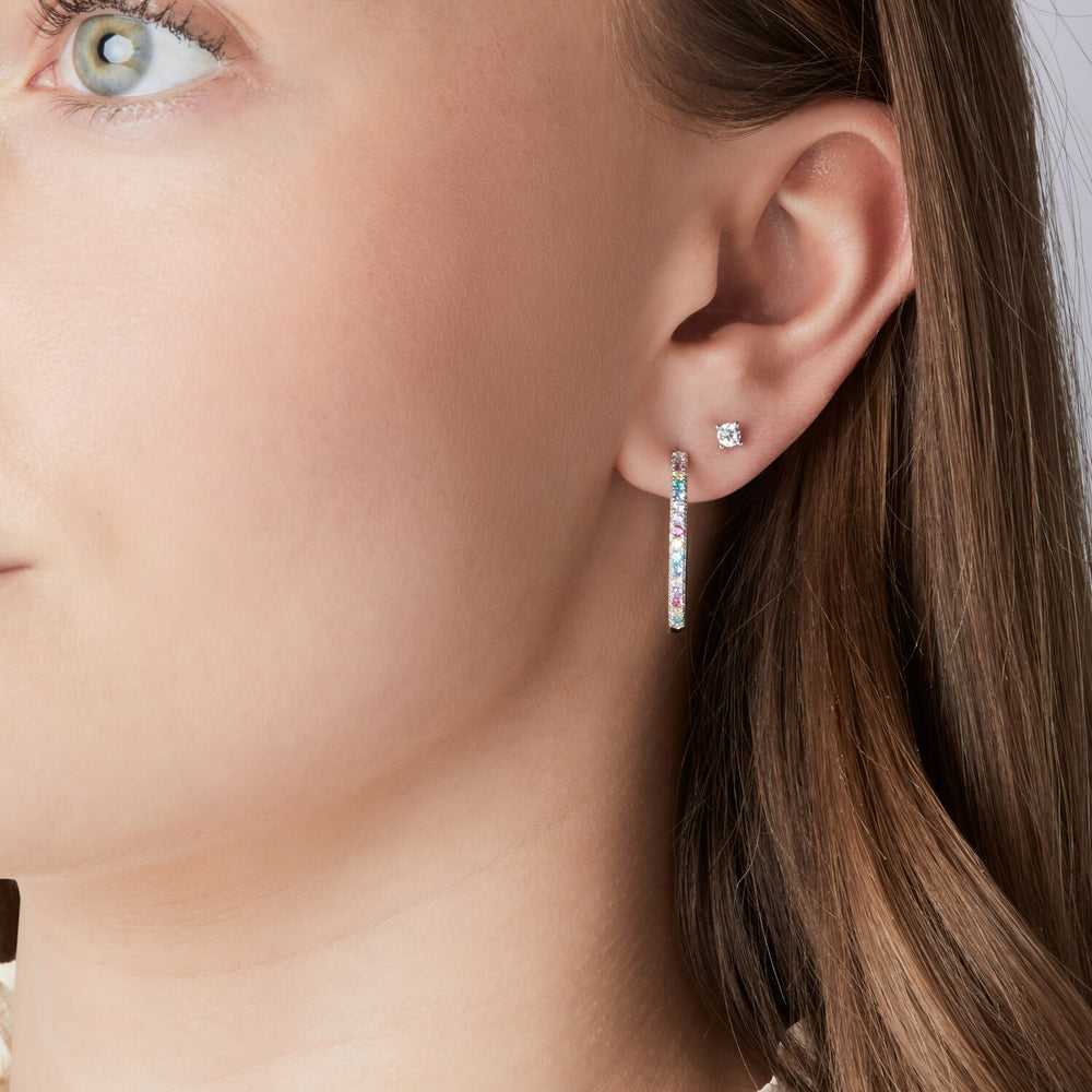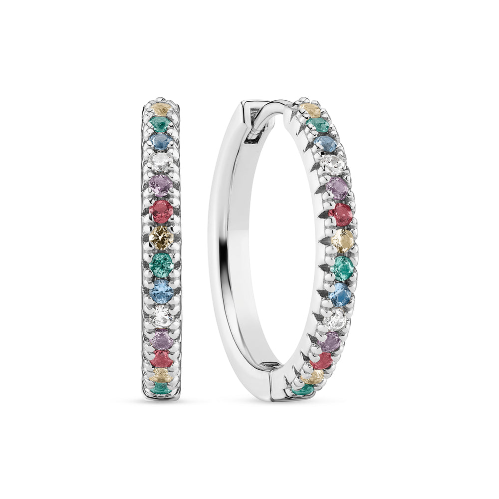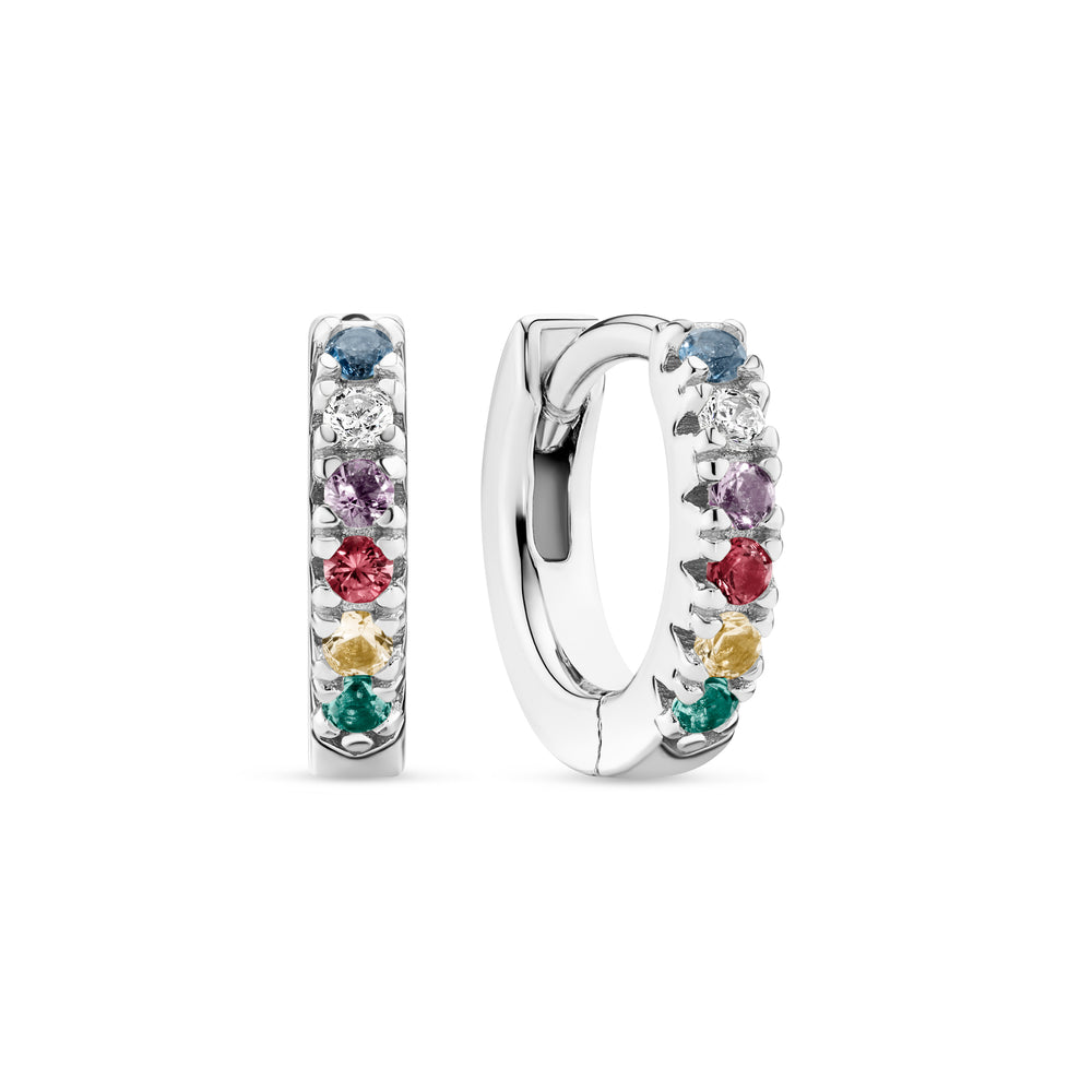 örhängen i sterlingsilver 925 med polerad yta och fasetterad mångfärgad zirkoner.