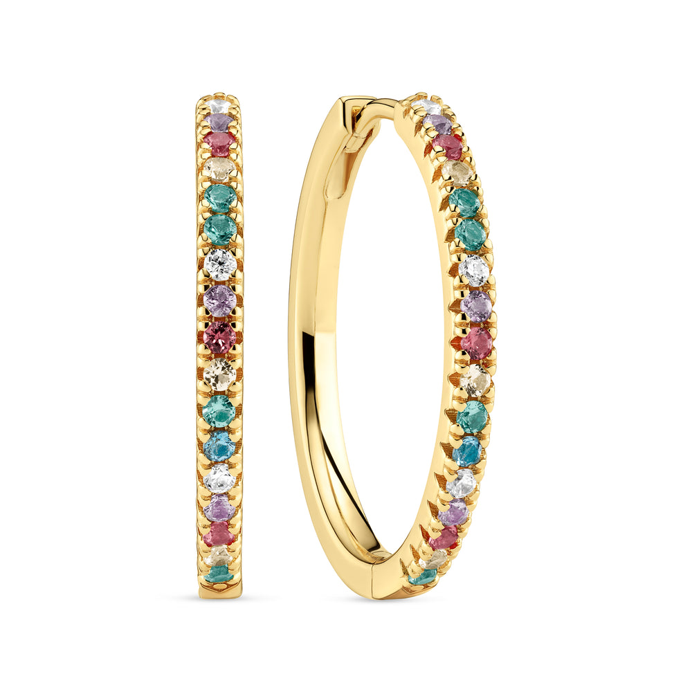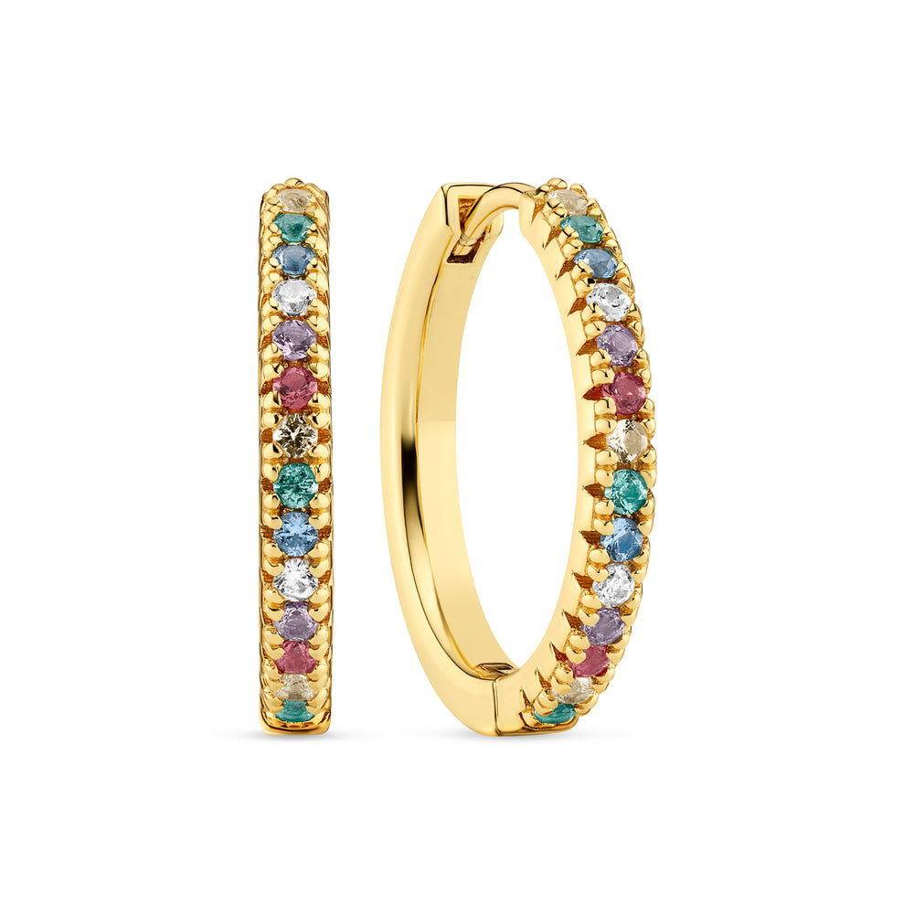 örhängen i sterlingsilver 925 guldpläterad med 18 karat guld med polerad yta och fasetterad mångfärgad zirkoner.