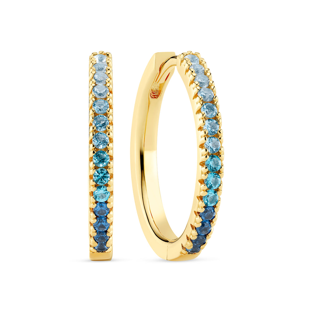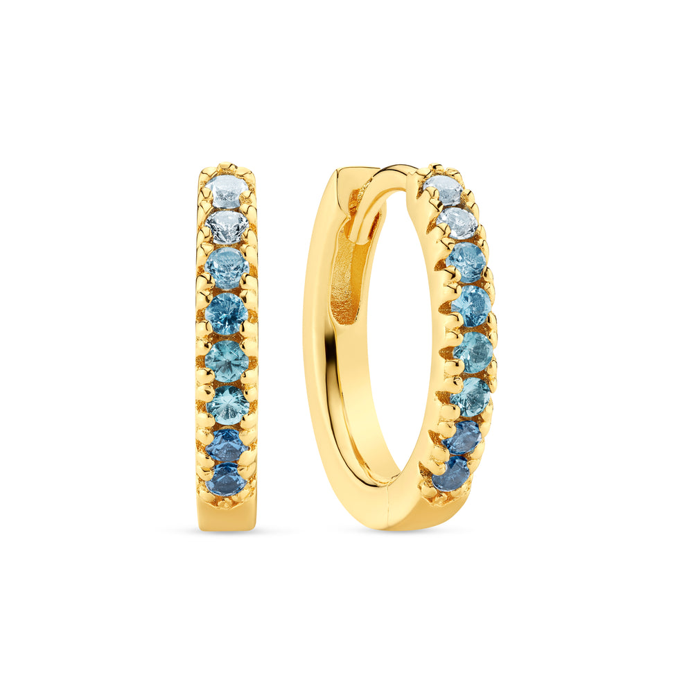 Örhängen av 18 karat guldpläterad 925 Sterling silver med polerad yta och facettslipade blåa och vita gradient zirkoner.
