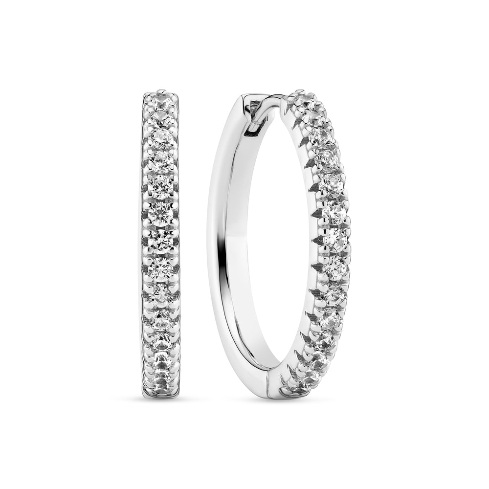 Örhängen i rodiumpläterat sterlingsilver 925 med blank yta och facetterad vit zirkon.