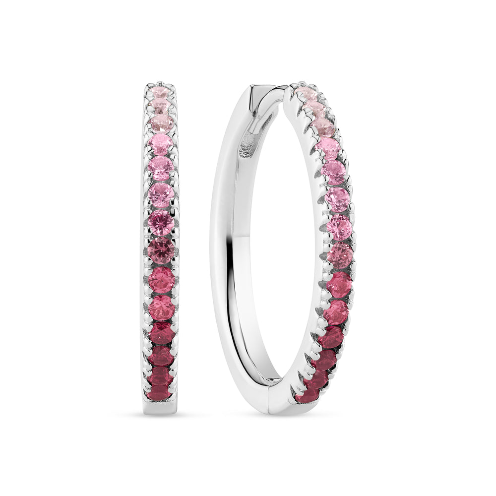 Örhängen tillverkade av 925 sterlingsilver med rhodium, polerad yta och infattade med facetterade snitt i gradienttoner av rosa och vita zirkoner.