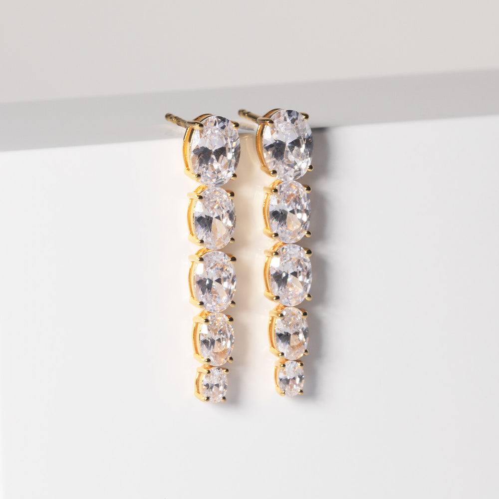 Örhängen av 18 karat guldpläterad 925 Sterling Silver med polerad yta och handplacerade facettslipade vita zirkoner.