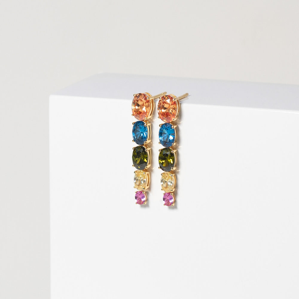 Örhängen av 18 karat guldpläterad 925 Sterling Silver med polerad yta och handplacerade facettslipade multifärgade zirkoner.