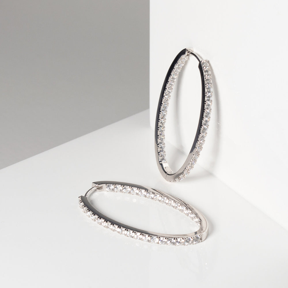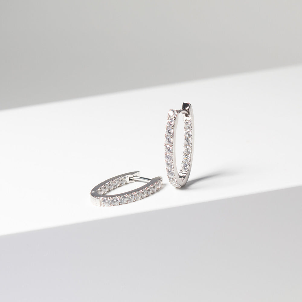 Örhängen av 925 Sterling Silver med rhodium, polerad yta och handplacerade med facettslipade vita zirkoner.