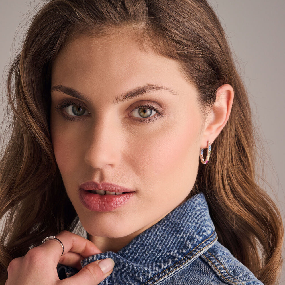 Örhängen av 18 karat guldpläterad 925 Sterling Silver, med polerad yta och handplacerade facettslipade multifärgade zirkoner.