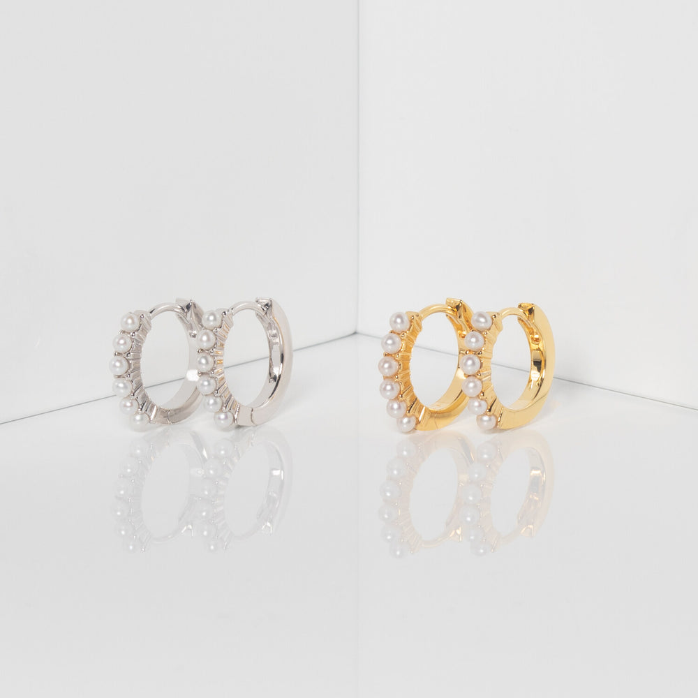Örhängen tillverkade av 18 karat förgyllt 925 sterlingsilver, polerad yta och prydda med glansiga sötvattenpärlor.