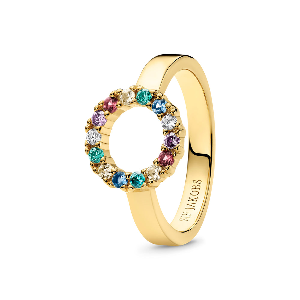 Ring i sterlingsilver 925 guldpläterad med 18 karat guld med polerad yta och fasetterad mångfärgad zirkoner.