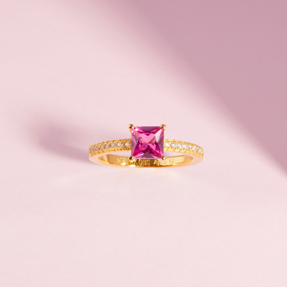 Ring i 18 karat förgyllt 925 Sterling silver med polerad yta och handplacerade facettslipade rosa zirkoner.