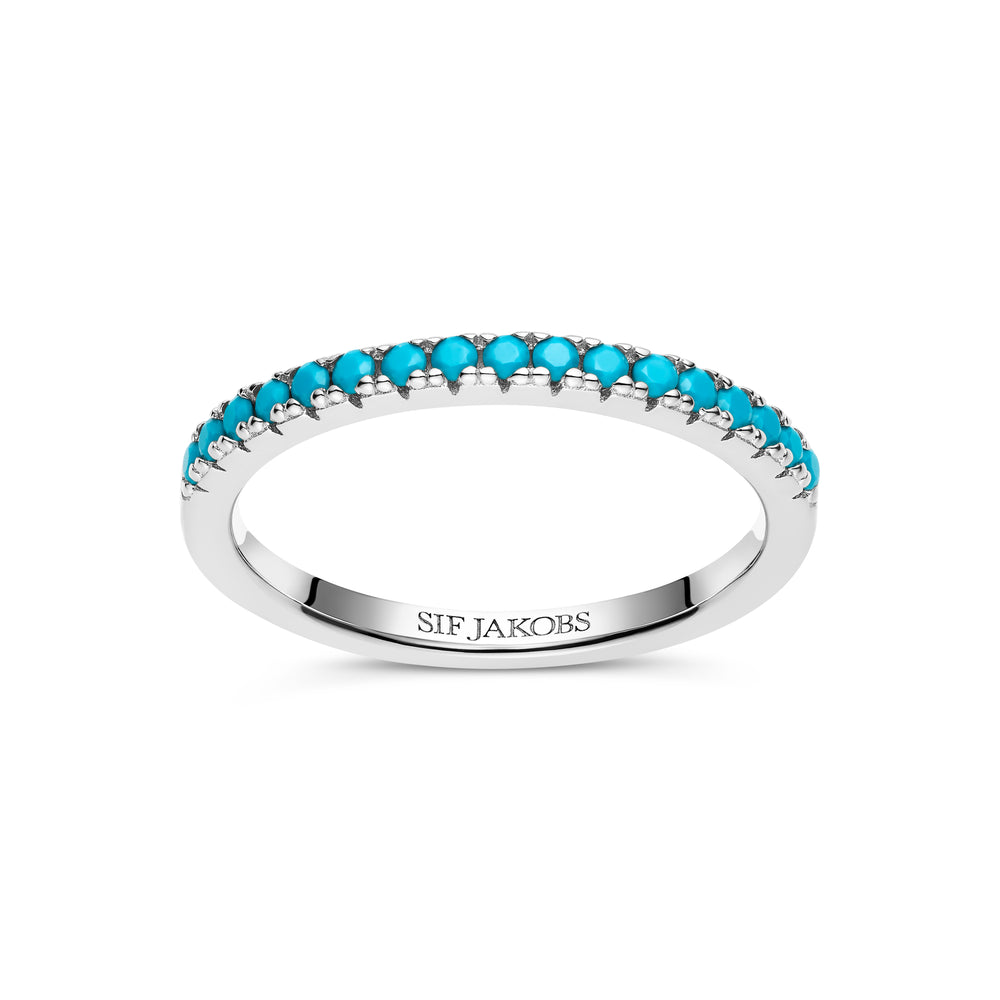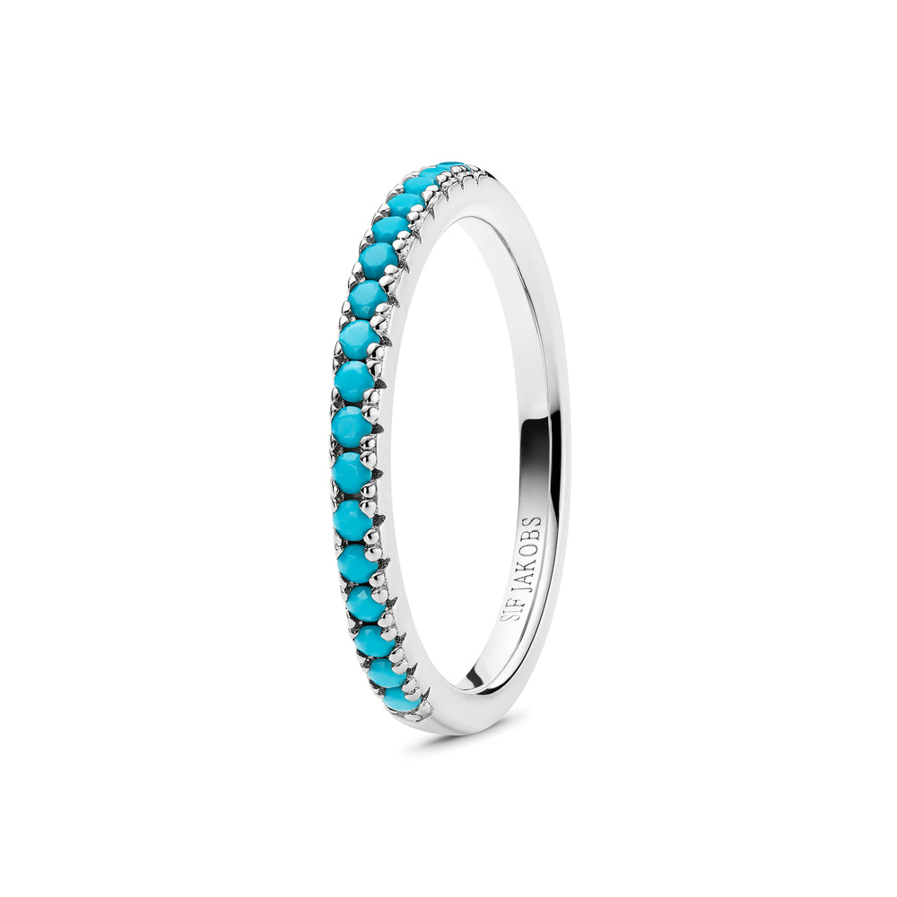 Ring i rodiumpläterad 925 Sterling Silver med polerad yta och handplacerade fasetterad turkos zirkoner