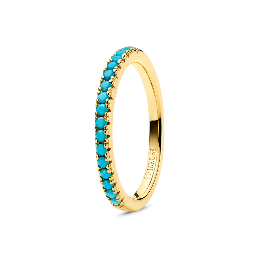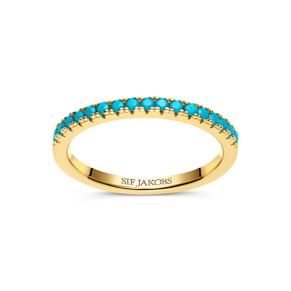Ring i 18 karat guldpläterad 925 Sterling Silver med polerad yta, och handplacerade fasetterad turkos zirkoner