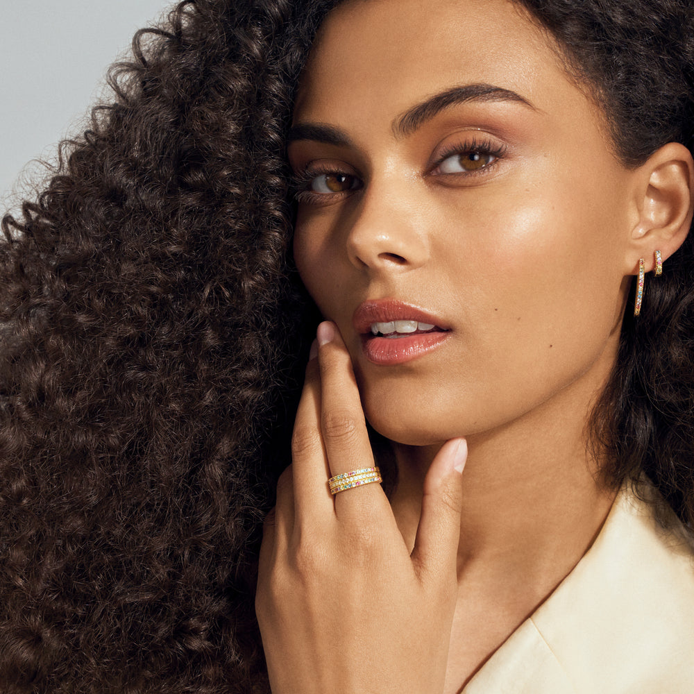 Ring i sterlingsilver 925 guldpläterad med 18 karat guld med polerad yta och fasetterad mångfärgad zirkoner.