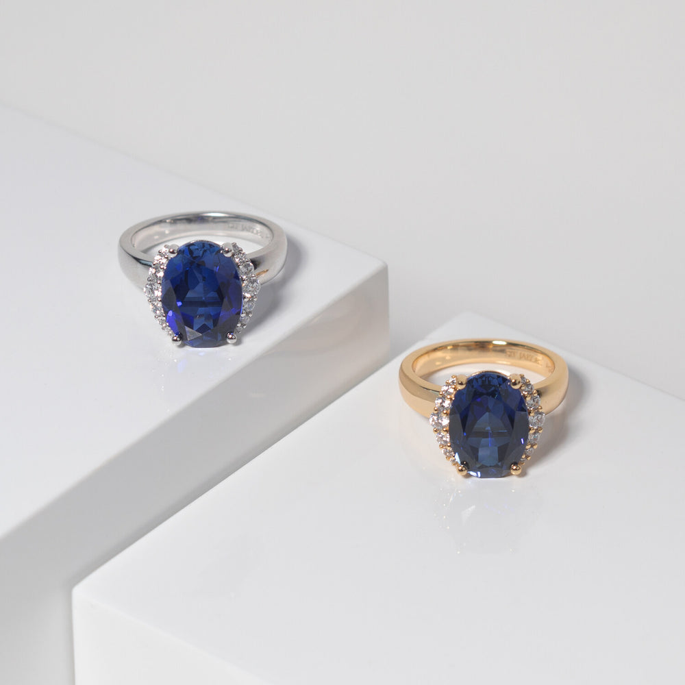 Ring av 18 karat guldpläterad 925 Sterling Silver med polerad yta, och handplacerade facettslipade blåa zirkoner.