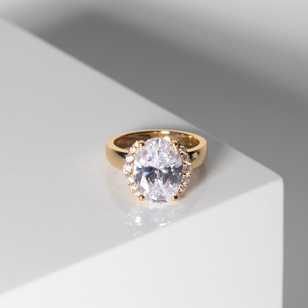 Ring av 18 karat guldpläterad 925 Sterling Silver med polerad yta och handplacerade facettslipade vita zirkoner.