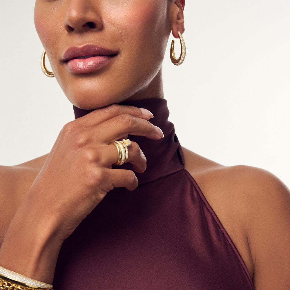 Ring i 18 karat guldpläterat 925 sterlingsilver med polerad yta och handplacerade fasetterad vita zirkoner