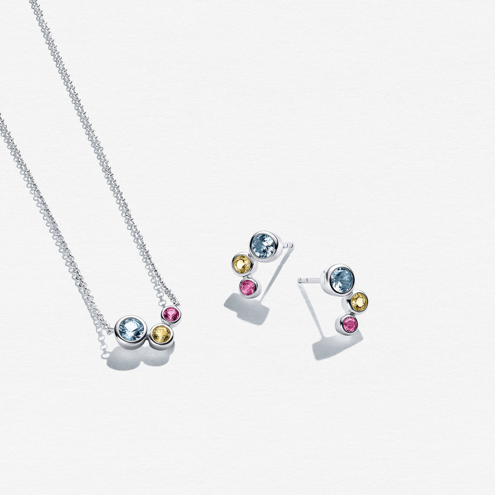Set i rodiumpläterat 925 Sterling Silver med polerad yta och handfattade, fasettslipade multifärgade zirkoner.