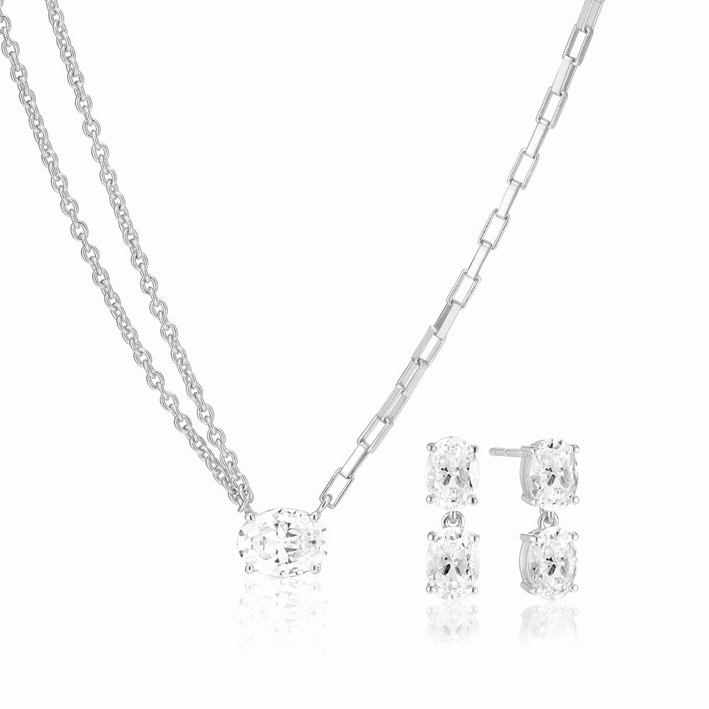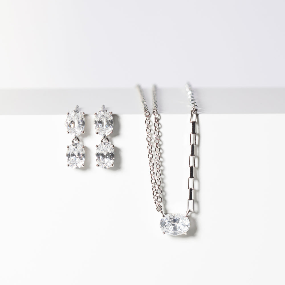 ELLISSE SET - ett fantastiskt tillskott till din smyckessamling! Tillverkat med 925 sterlingsilver och prytt med glittrande vita zirkoniastenar, inkluderar detta set en halsband och matchande örhänge Perfekt för varje tillfälle är ELLISSE SET en tidlös klassiker som aldrig går ur stil. Oavsett om du ska klä upp dig för en speciell händelse eller bara lägga till lite elegans till din vardagsklädsel, har detta set det du behöver. Missa inte detta oumbärliga tillskott till din smyckesask - skaffa ditt alldeles egna ELLISSE SET idag!